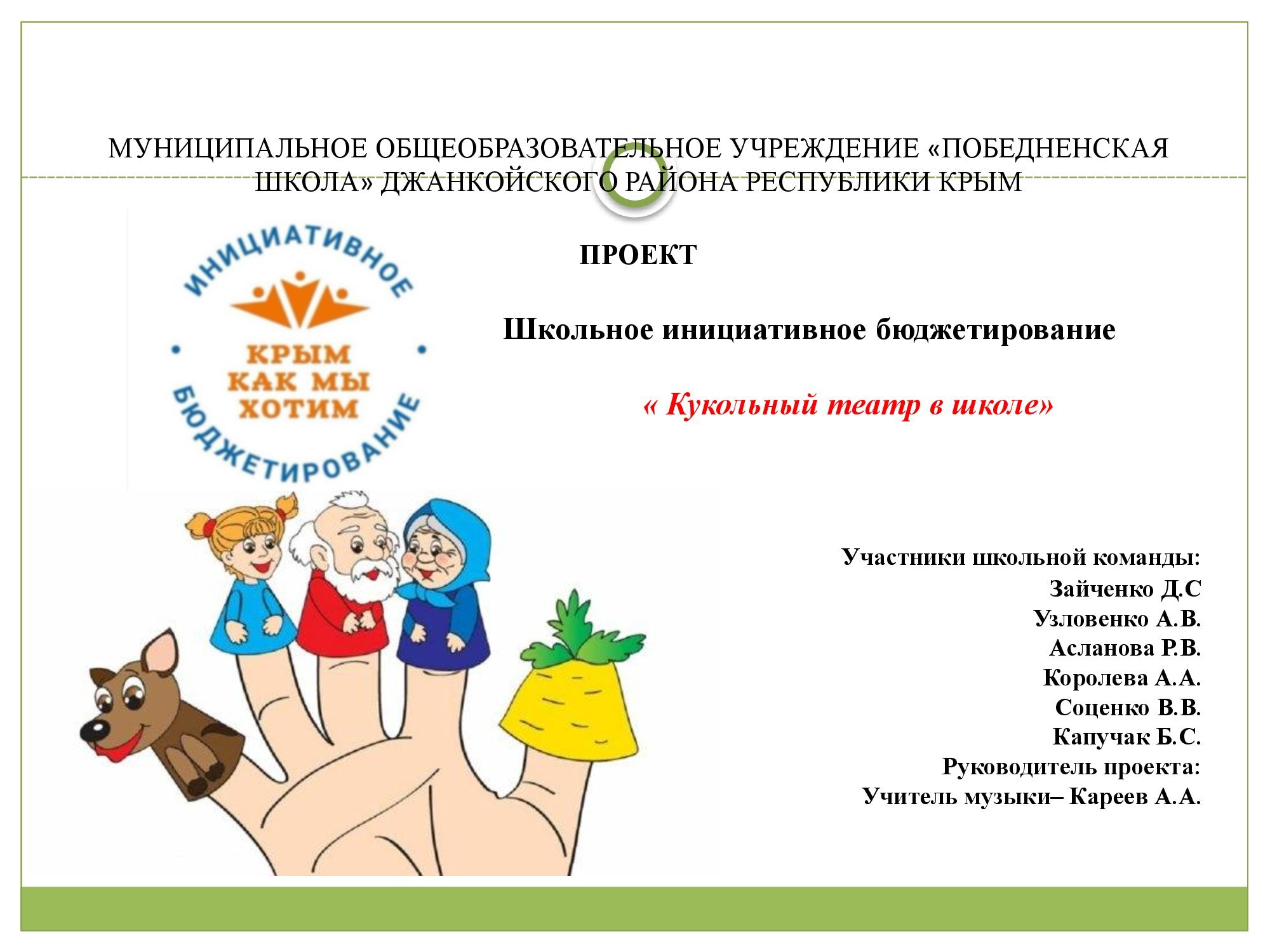 ПРОЕКТ-УЧАСТНИК "КУКОЛЬНЫЙ ТЕАТР В ШКОЛЕ"